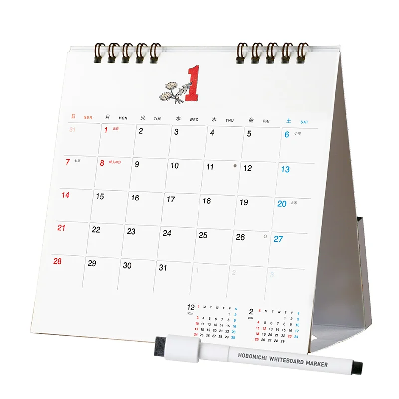 コンパクトに設計された卓上カレンダーに