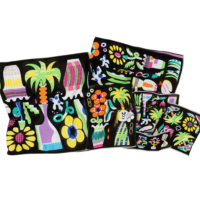 プリントのタオルは、使い始めに色落ちしたり、染料のニオイがすることがあります。白物と一緒に洗わないでください。