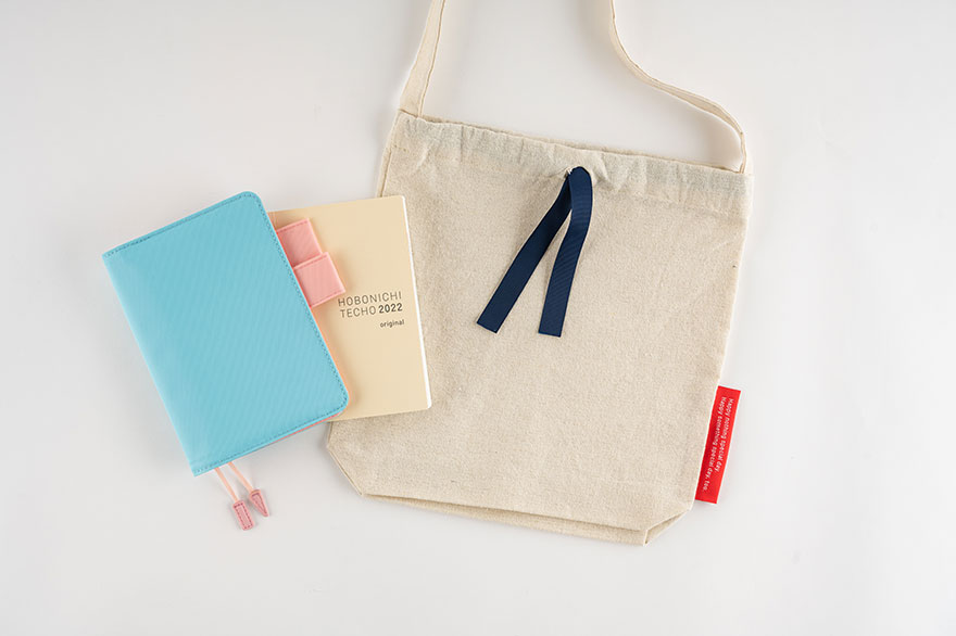 ▲ギフトバッグ(ちいさい)とオリジナルの手帳本体とカバー