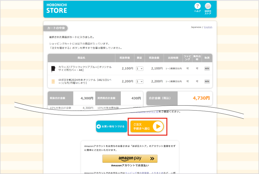 「ほぼ日ストアヘルプ お申込し込みの流れ」から