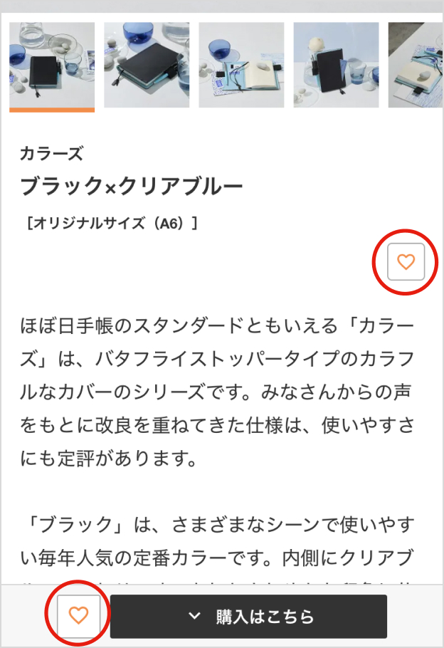 気になる商品を、ラインナップページや商品詳細ページからブックマークしておけます。