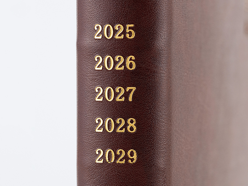 表には金の箔押しで「ほぼ日5年手帳」の文字と