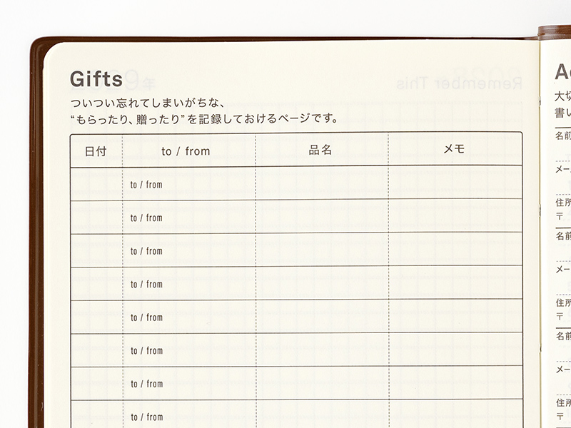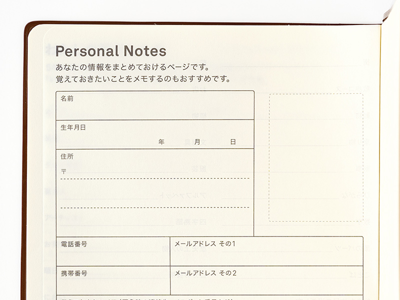 本体にはうすくて軽く、丈夫な手帳専用紙