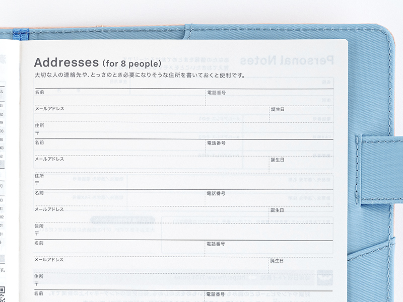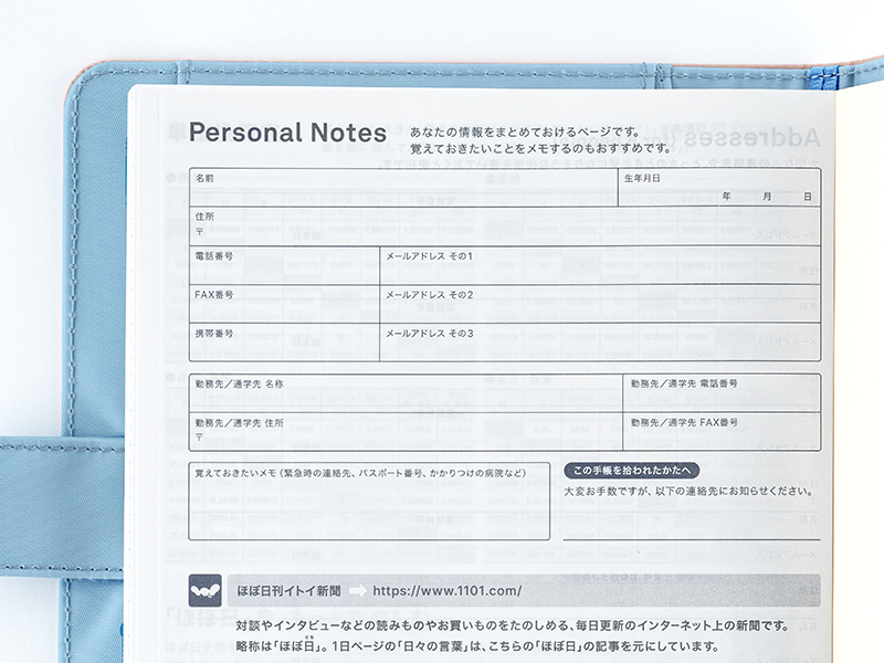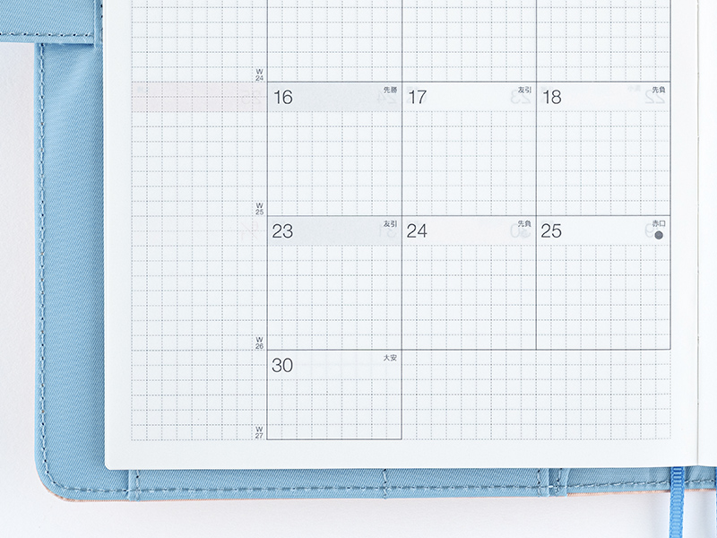 本体にはうすくて軽く、丈夫な手帳専用紙