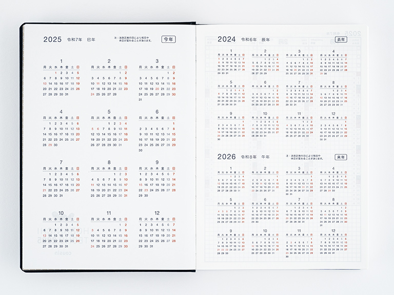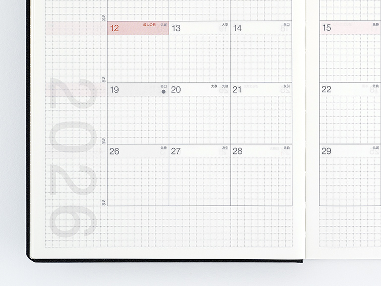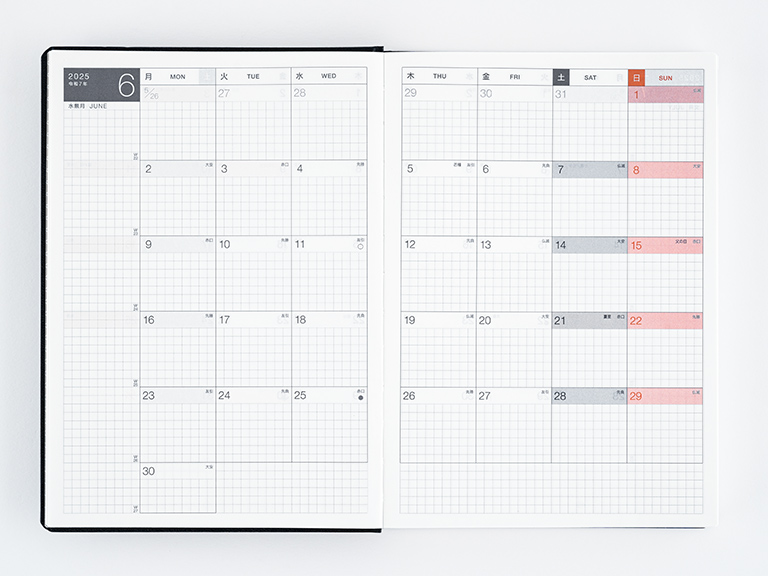 本体にはうすくて軽く、丈夫な手帳専用紙