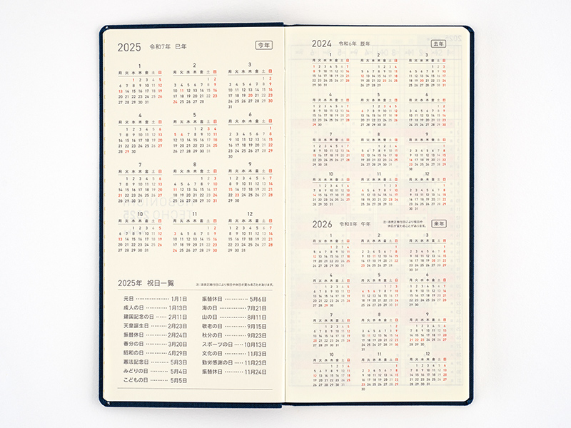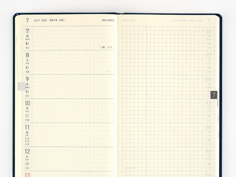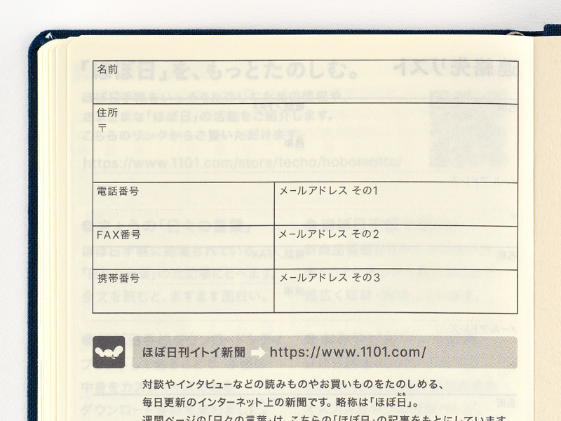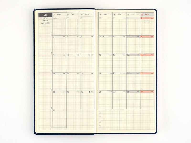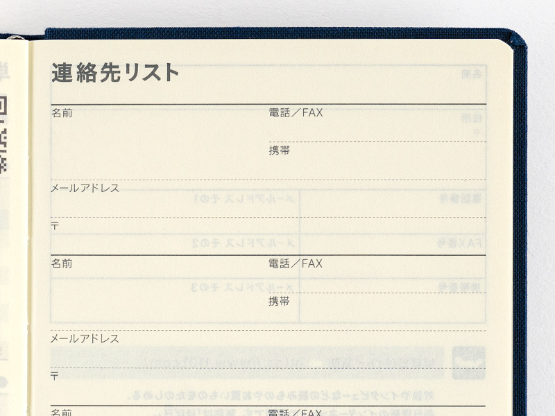 本体にはうすくて軽く、丈夫な手帳専用紙