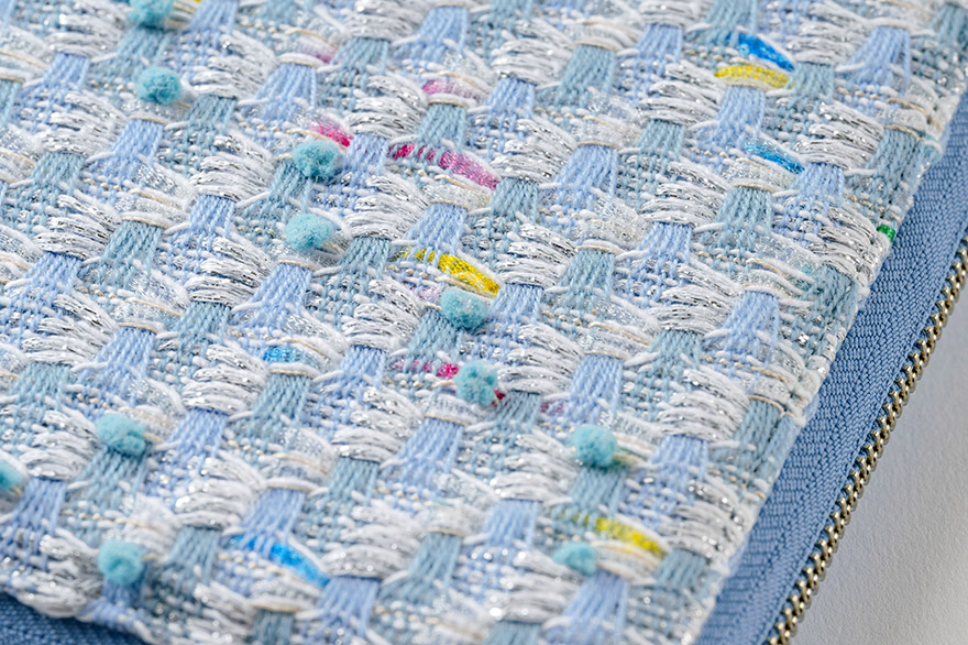 ファンシーヤーンを織り交ぜてデザインした生地は
