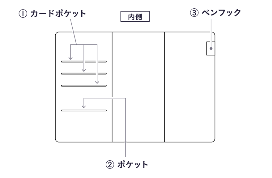 | その他 | 【手帳本体 カズン】の詳細は「全タイプ解説」からご確認いただけます。 |