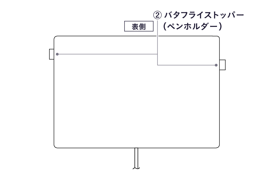 このカバーのペンフックはペンのクリップ部分を差し込んで使うタイプです