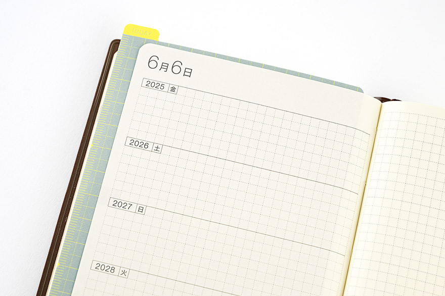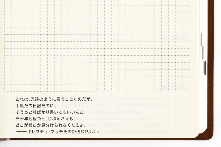 | 紙質・製本 | 薄くて軽く、裏抜けの少ないトモエリバー(手帳専用紙)/糸かがり製本 |