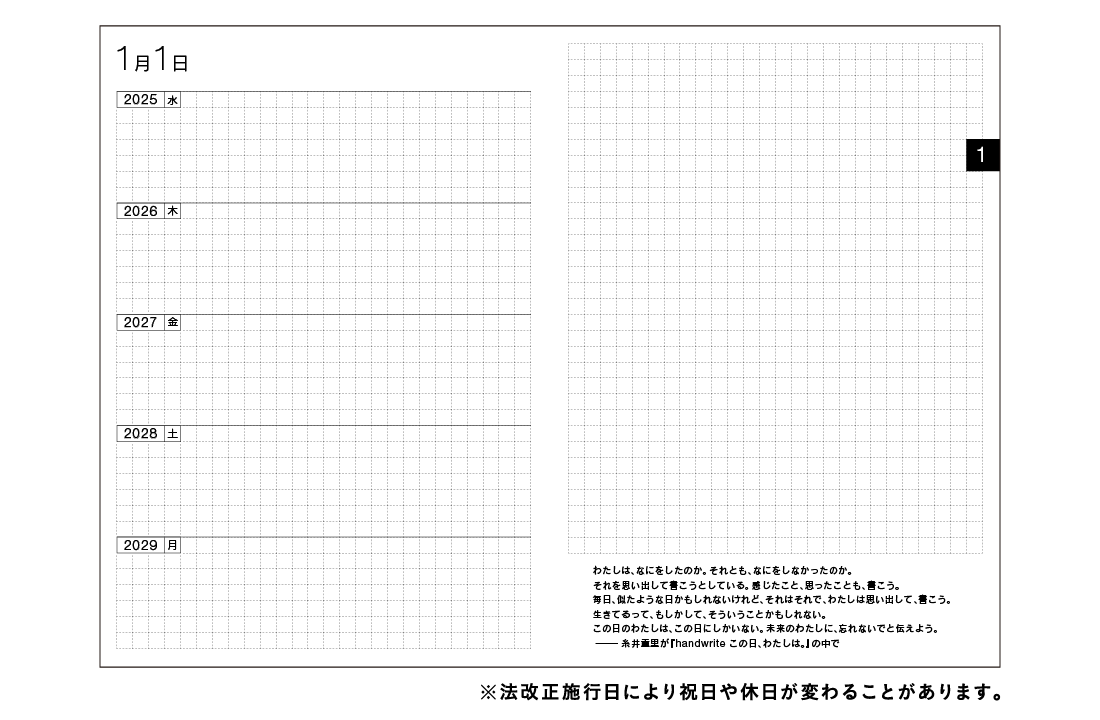 | 1日ページ | 2025年~2029年 1月1日〜12月31日 |