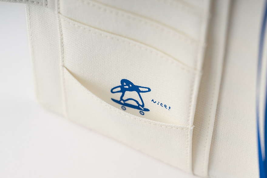カバーのカラーやプリント柄は、白い生地に染色や印刷をしてつくられています。色合い、プリントの柄などはできるかぎり均一になるように確認しながら制作しておりますが、個体ごと、またはポケットなどのパーツごとに若干の色合いの違いや、プリントのにじみ、色ムラが出ることがあります。また、まれに黒や白の小さな点が見られることがあります。製造工程上避けられないものですのであらかじめご了承ください。