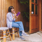 表紙素材の特性上、180度開くためには、手で軽くおさえる必要があります。
