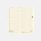 | 記載される内容 | 週番号/月の満ち欠け(週間ページ全てに記載・月間カレンダーに満月と新月のみ記載) ※祝日の記載はありません。 |