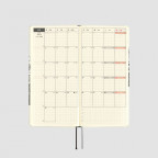 | 記載される内容 | 週番号/月の満ち欠け(週間ページ全てに記載・月間カレンダーに満月と新月のみ記載) ※祝日の記載はありません |