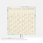| 記載される内容 | 週番号/六曜(大安、仏滅など)/二十四節気(立春、春分、夏至など)/祝日、記念日など(バレンタインデー、ひなまつり、母の日、父の日など)/月の満ち欠け(週間ページ全てに記載・月間カレンダーに満月と新月のみ記載) |