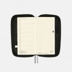 手帳といっしょに文房具や書類、カードなどを持ち運べるように設計されていますが、容量を超える収納はお避けください。