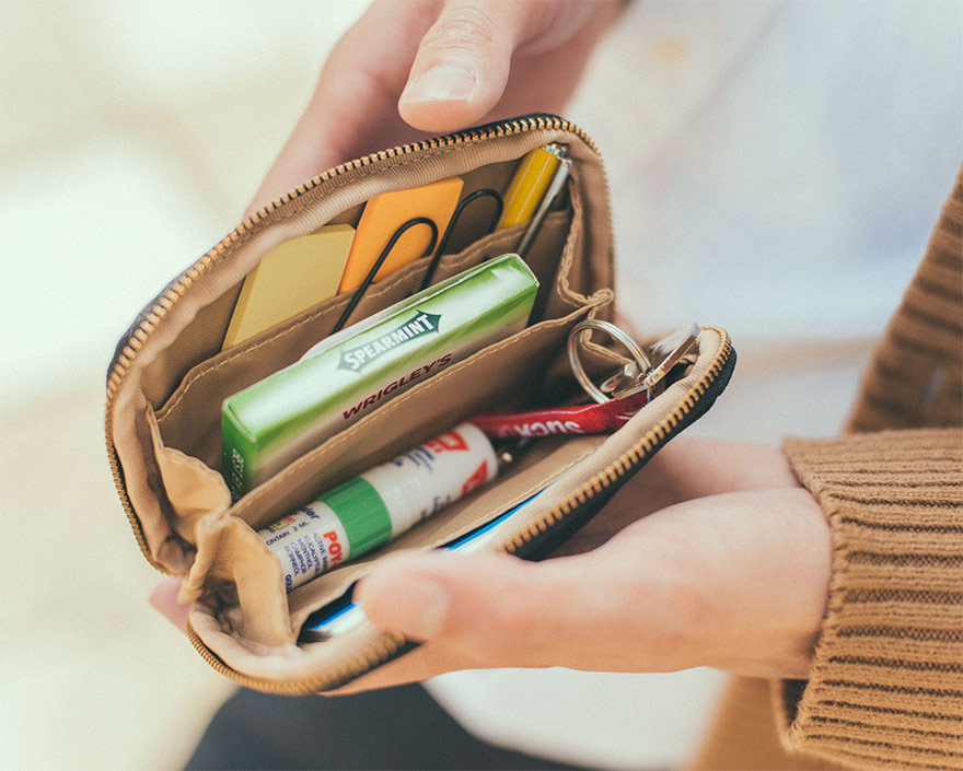 リフレッシュしたいときのガムやミント、読書中に使うふせんや短いペン‥‥。仕事の合間のリラックスタイムを充実させてくれるアイテムを入れておくのも◎。