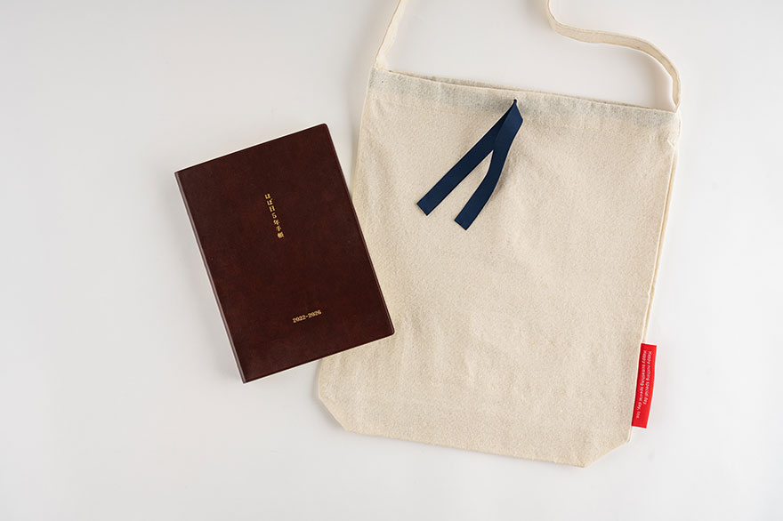 ▲ギフトバッグ(ちいさい)とオリジナルの手帳本体とカバー