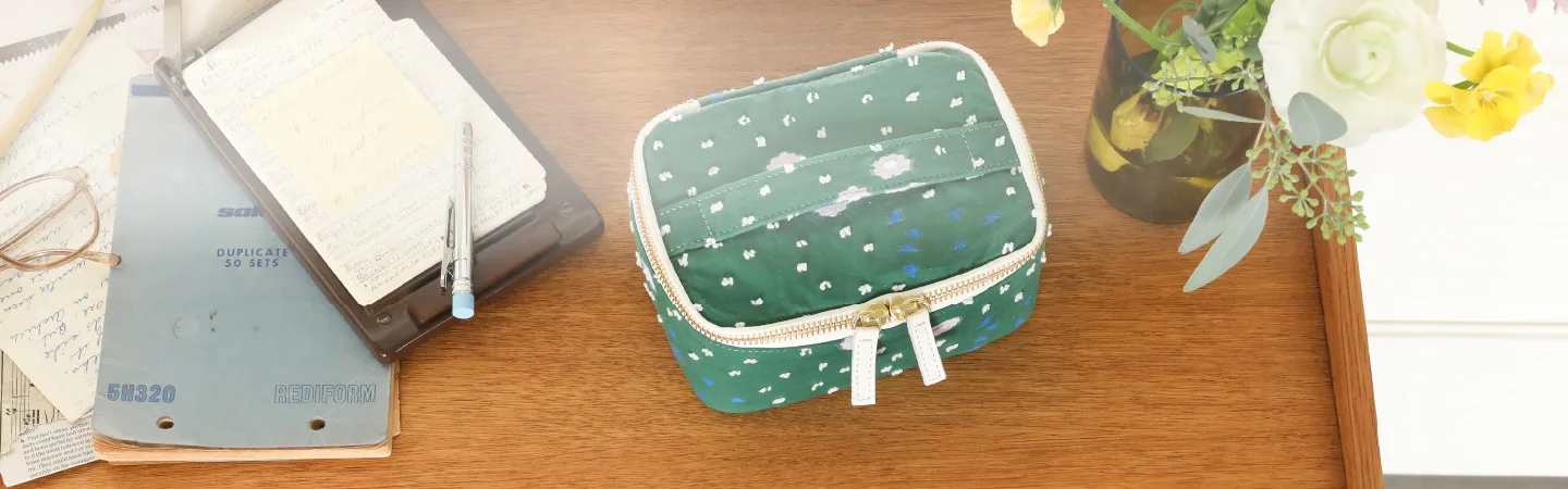 ポーチ自体が平らに開くので、中身を一度にぱっと見渡せます。