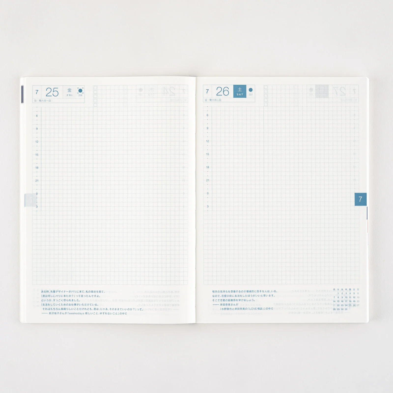| 週間ダイアリー | 前期:2024年12月30日〜2025年7月6日(全54ページ) 後期:2025年6月30日〜2026年1月4日(全54ページ) |