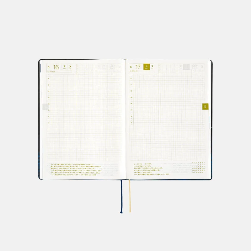 | 記載される内容 | 日番号/週番号(月間カレンダー・週間ダイアリーに記載)/月の満ち欠け(1日ページ全ページに記載、月間カレンダー・週間ダイアリーに満月と新月のみ記載) |