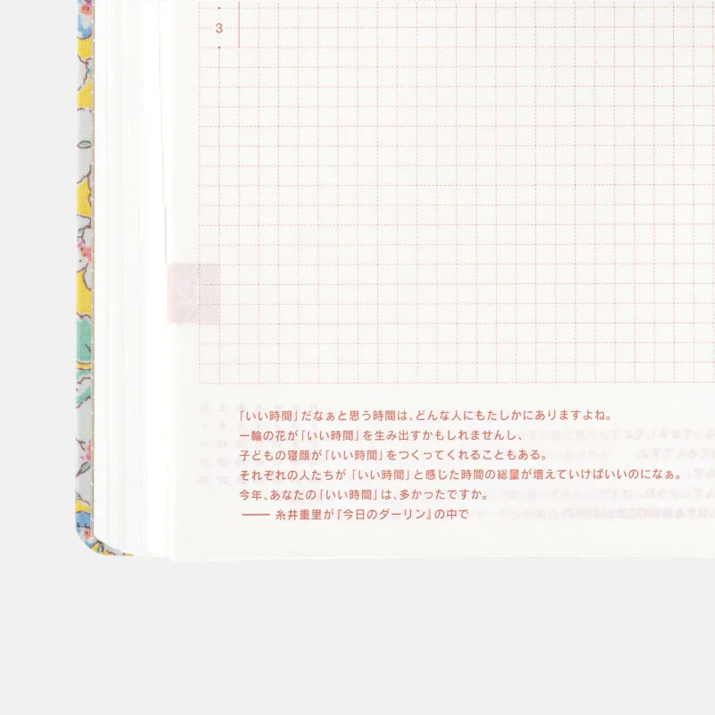 | おまけページ | Time Table / Graph Paper / Favorites / My 100 / Sample Symbols and Icons / How to Have Fun Keeping a Diary / Oodles of Noodles / Words to Remember / 365 Days Check-Off Sheet / Getting the Most Out of Your Hobonichi Techo / Gifts / Addresses / Personal Notes |