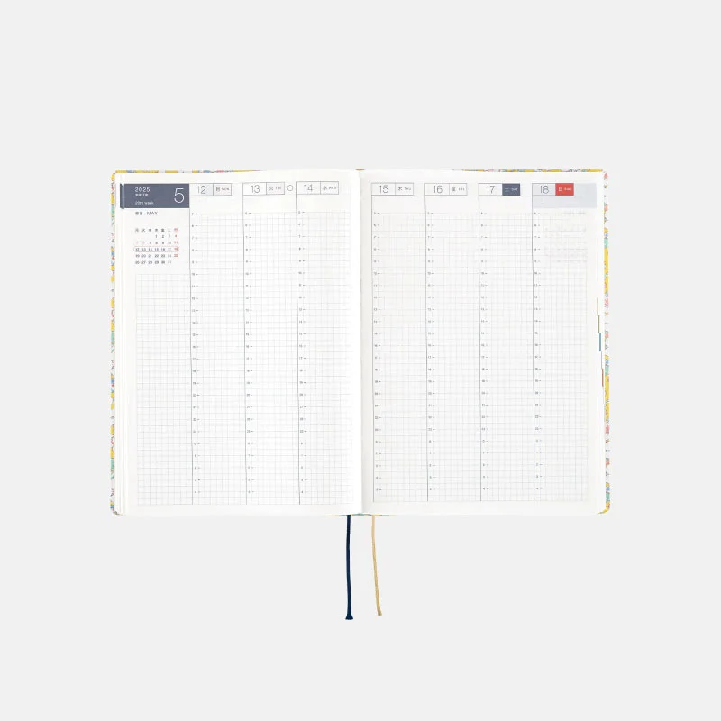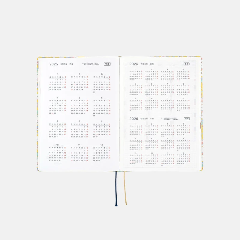 | 1日ページ | 2025年1月1日〜12月31日(全377ページ) *手帳の使いはじめに、自由に使えるウォーミングアップ用ページ(2ページ)があります。 *各月のはじめに、「ことしの歳時記」と、その月のことをまとめて書ける扉ページ(1ページ)があります。 *すべてのページに「日々の言葉」を掲載。 *右ページに「ミニカレンダー」を掲載(月曜はじまり)。 |