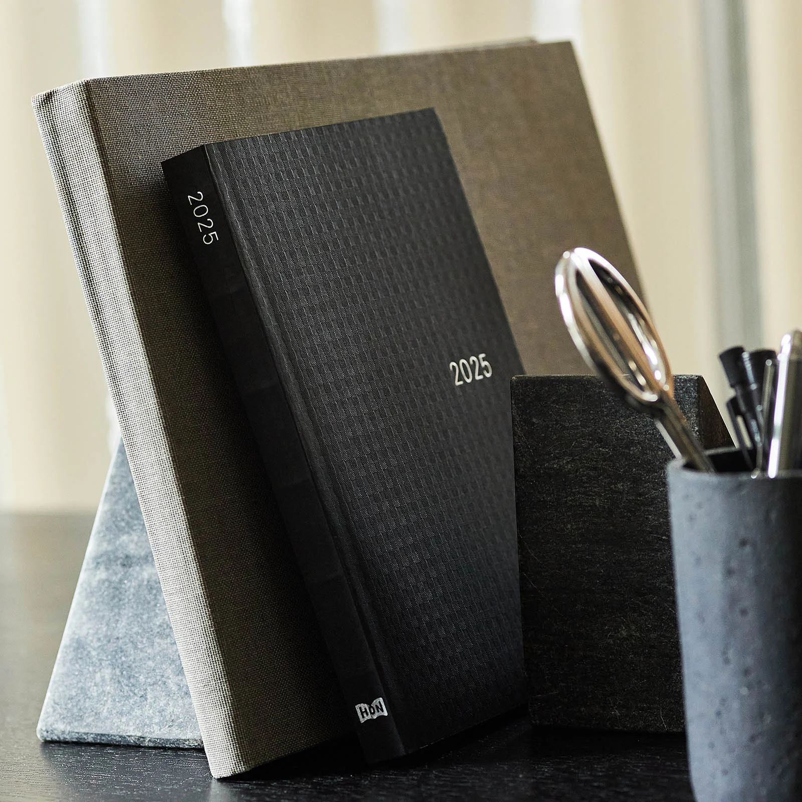 | 一日ページ | 2025年1月1日〜12月31日(全377ページ) *手帳の使いはじめに、自由に使えるウォーミングアップ用ページ(2ページ)があります。 *各月のはじめに、その月のことをまとめて書ける扉ページ(1ページ)があります。 *すべてのページに「日々の言葉」を掲載(見開きに1つ)。 *右ページに「ミニカレンダー」を掲載(月曜はじまり)。 |