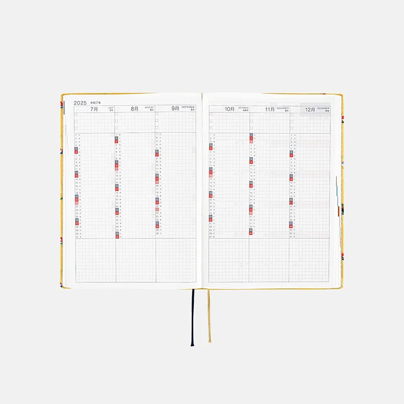 | 記載される内容 | 日番号/週番号(月間カレンダー・週間ダイアリーに記載)/旧暦/六曜(大安、仏滅など)(月間カレンダーに記載)/二十四節気(立春、春分、夏至など)、雑節/祝日、記念日など(バレンタインデー、ひなまつり、母の日、父の日など)/月の満ち欠け(1日ページ全ページに記載、月間カレンダー・週間ダイアリーに満月と新月のみ記載) |