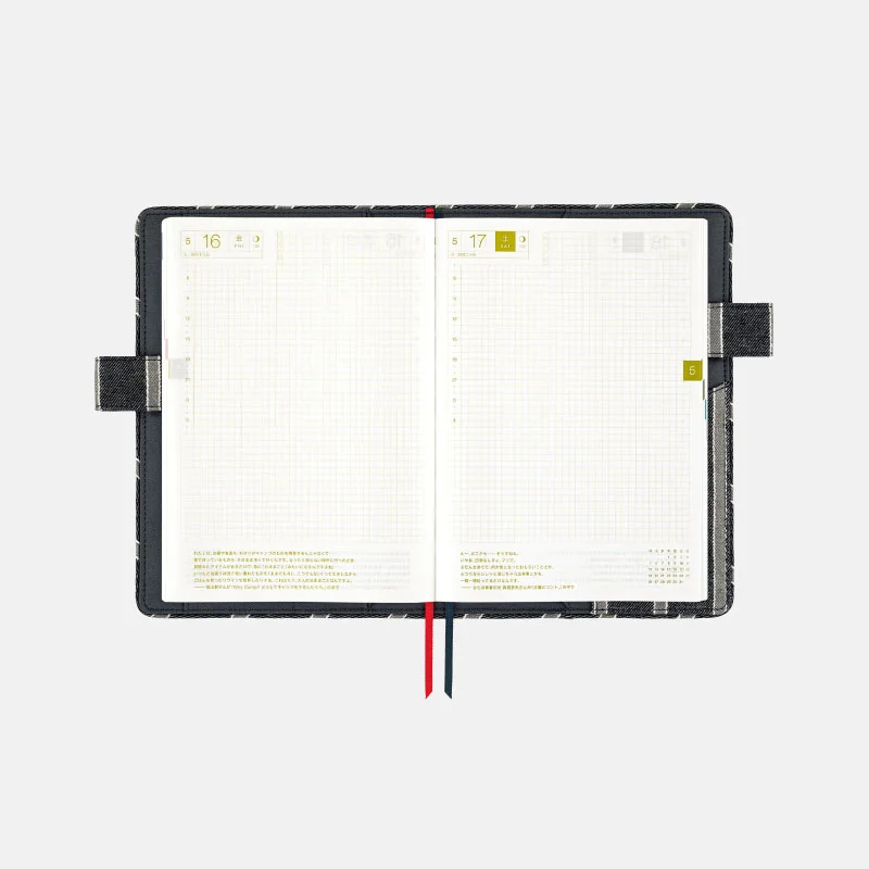| 記載される内容 | 日番号/週番号(月間カレンダー・週間ダイアリーに記載)/月の満ち欠け(1日ページ全ページに記載、月間カレンダー・週間ダイアリーに満月と新月のみ記載) |