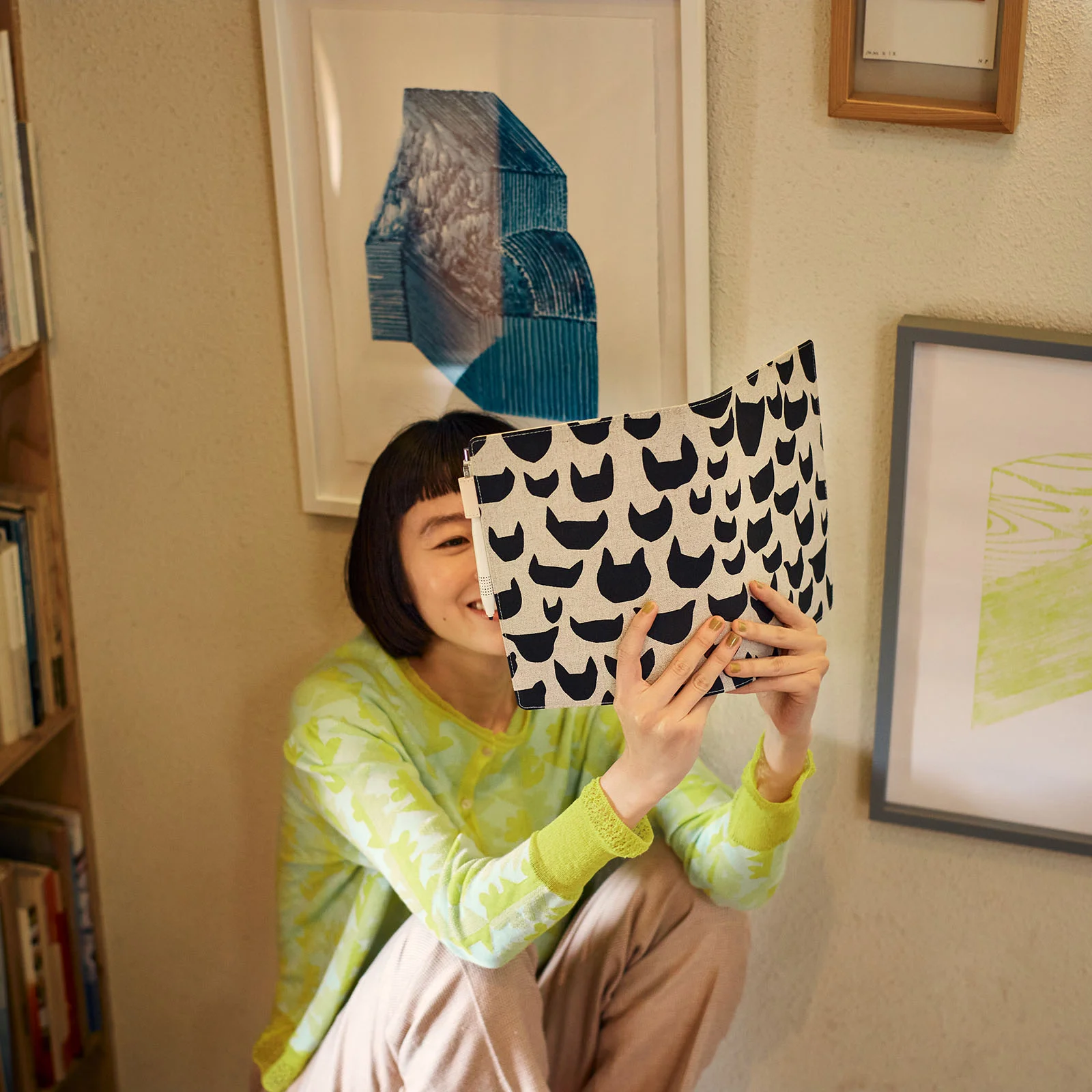 カバーのカラーやプリント柄は、白い生地に染色や印刷をしてつくられています。色合い、プリントの柄などはできるかぎり均一になるように確認しながら制作しておりますが、個体ごと、またはポケットなどのパーツごとに若干の色合いの違いや、プリントのにじみ、色ムラが出ることがあります。また、まれに黒や白の小さな点が見られることがあります。製造工程上避けられないものですのであらかじめご了承ください。