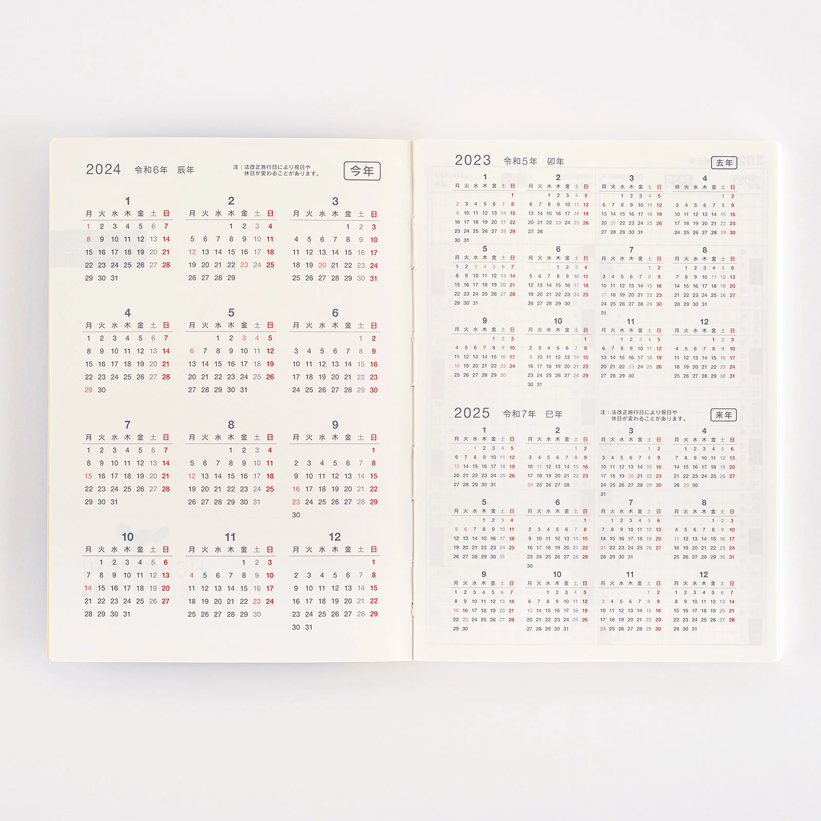 | 紙質・製本 | 薄くて軽く、裏抜けの少ないトモエリバーS(手帳専用紙)/糸かがり製本 |