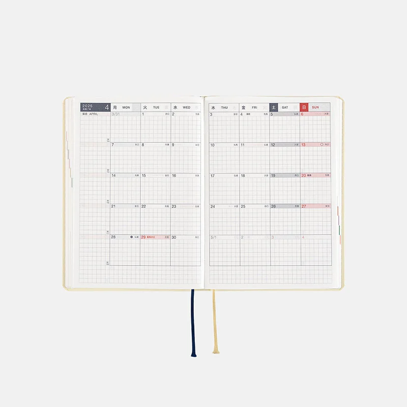 | 紙質・製本 | 薄くて軽く、裏抜けの少ないトモエリバー(手帳専用紙)/糸かがり製本 |