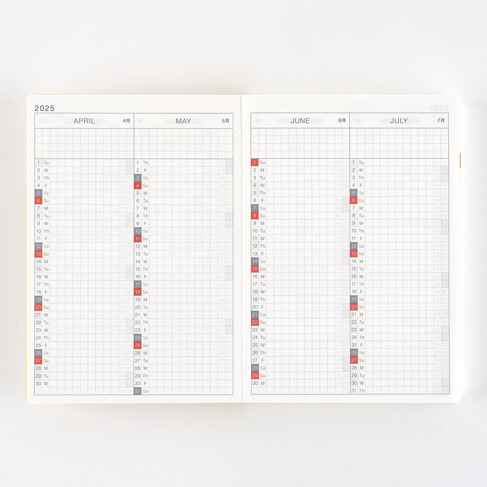 | おまけページ | Time Table / Graph Paper / Favorites / My 100 / Sample Symbols and Icons / How to Have Fun Keeping a Diary / Oodles of Noodles / Words to Remember / 365 Days Check-Off Sheet / Looking Back at the Year 2025/ Getting the Most Out of Your Hobonichi Techo / Gifts / Addresses / Personal Notes |