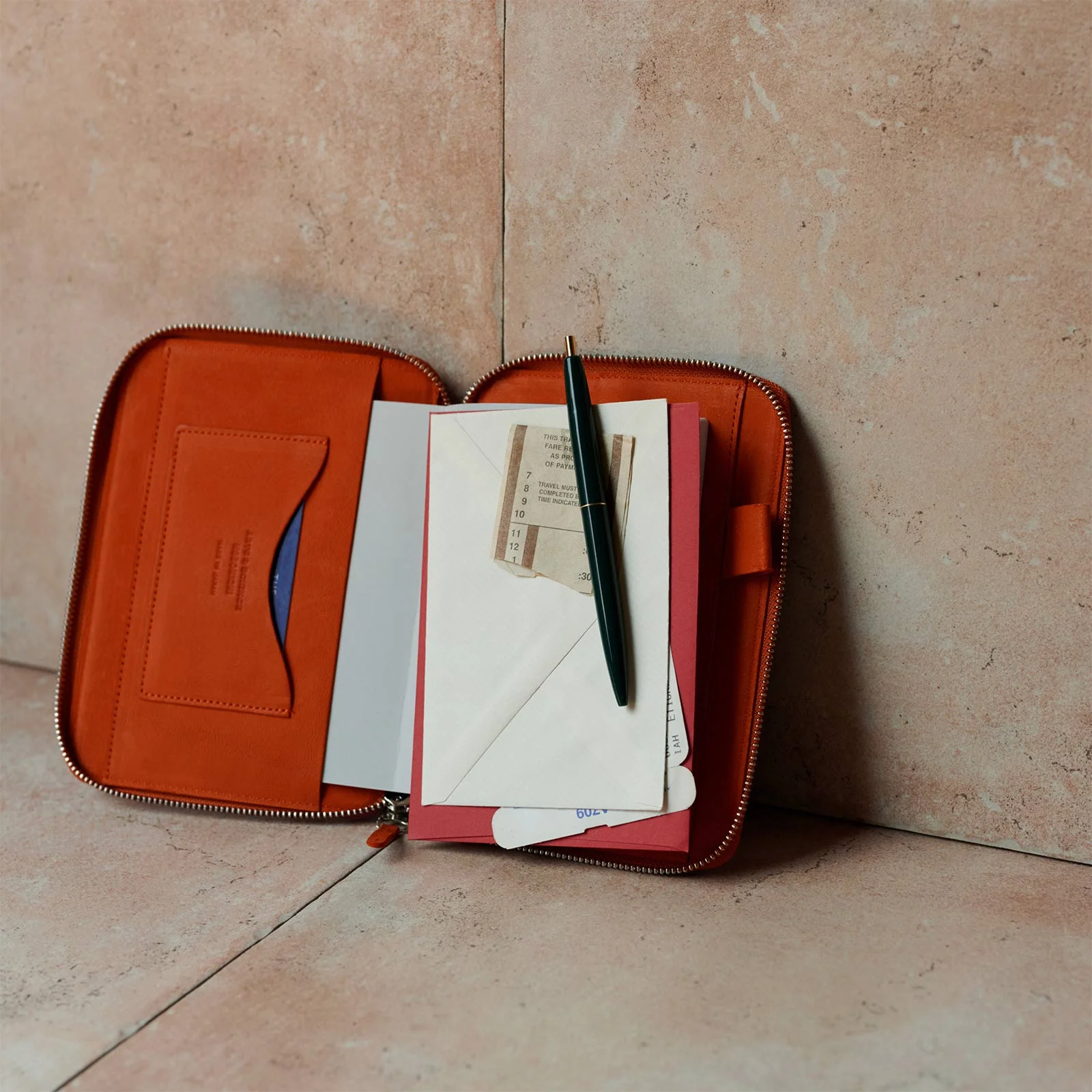 カード、名刺などを挟んでおけるポケットも。