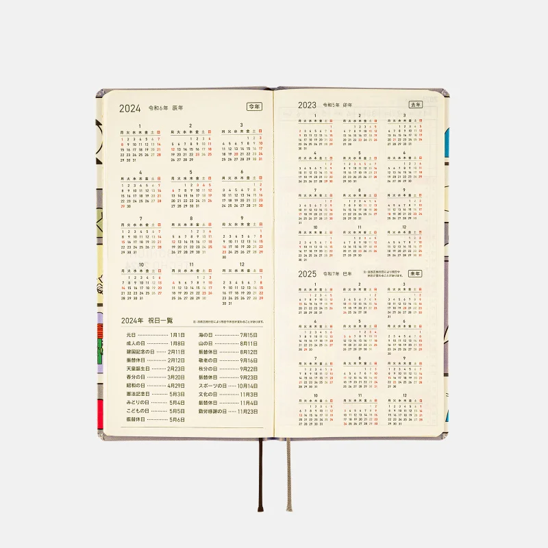 表紙の年号の箔押しの文字は、日々お使いいただくうちにはがれることがあります。強くこすらないようご注意ください。