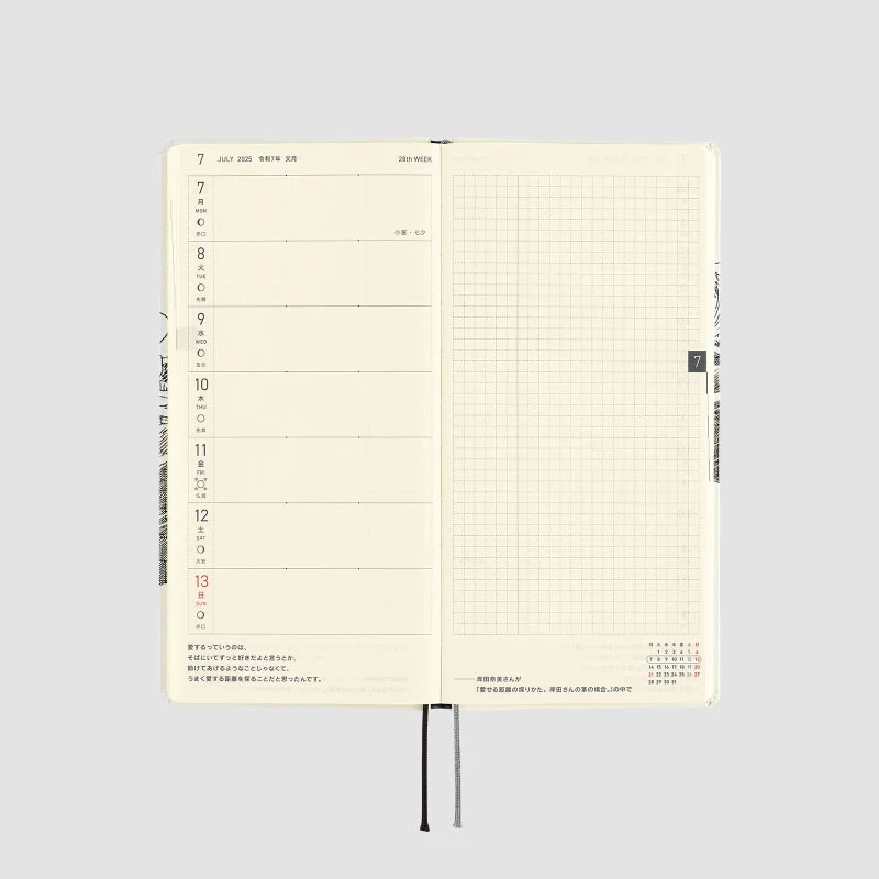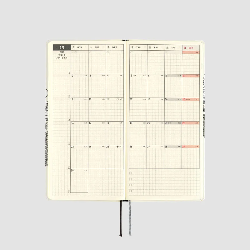 | 紙質・製本 | 薄くて軽く、裏抜けの少ないトモエリバー(手帳専用紙)/糸かがり製本 |