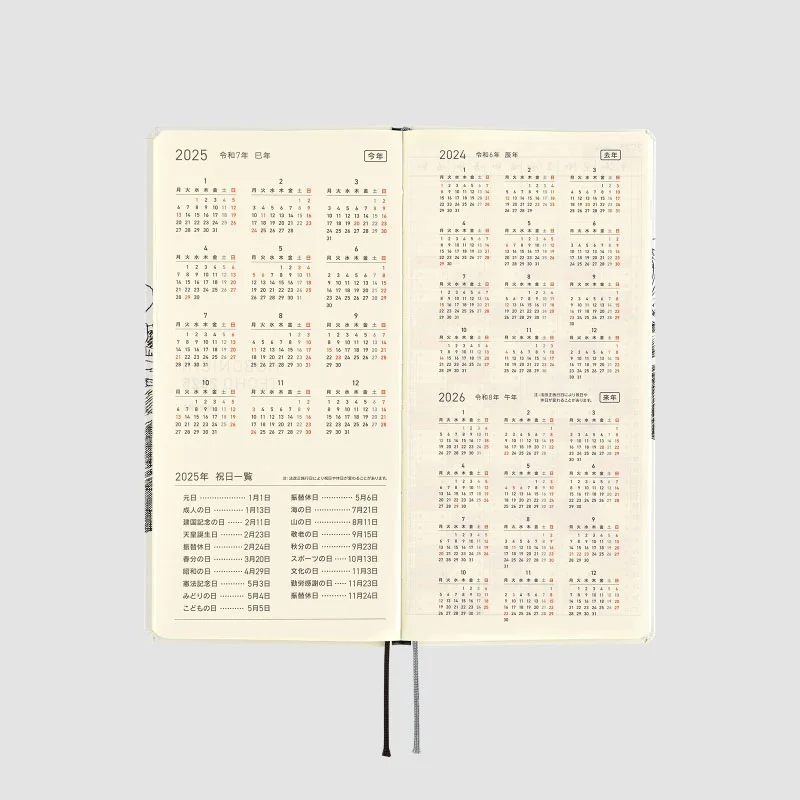 表紙の年号の箔押しの文字は、日々お使いいただくうちにはがれることがあります。強くこすらないようご注意ください。