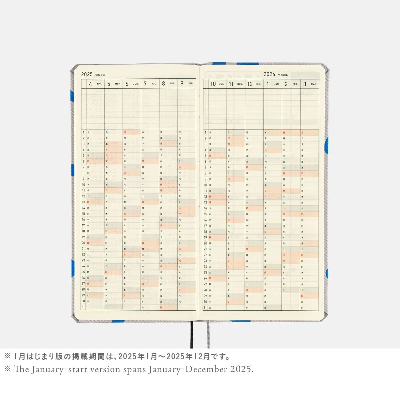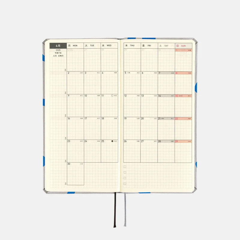 | 紙質・製本 | 薄くて軽く、裏抜けの少ないトモエリバー(手帳専用紙)/糸かがり製本 |