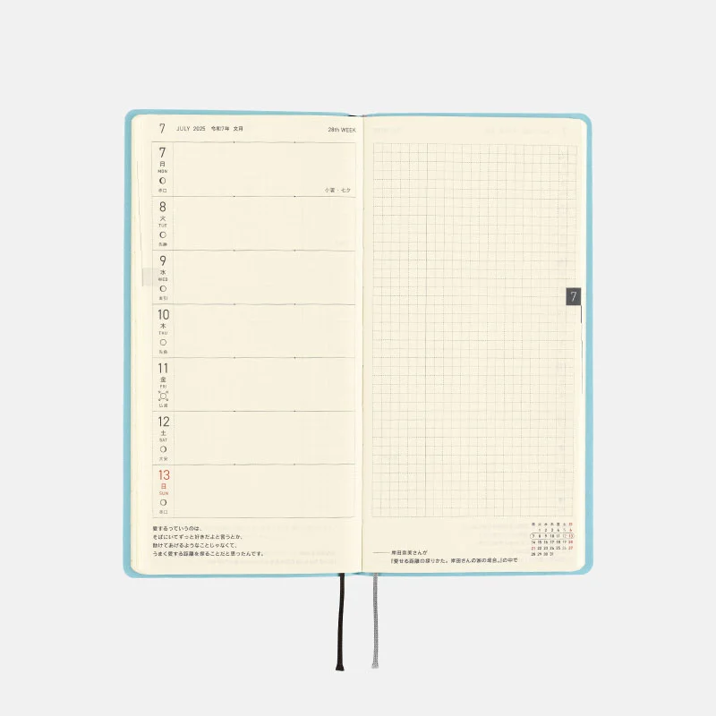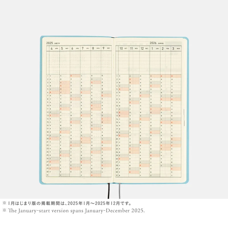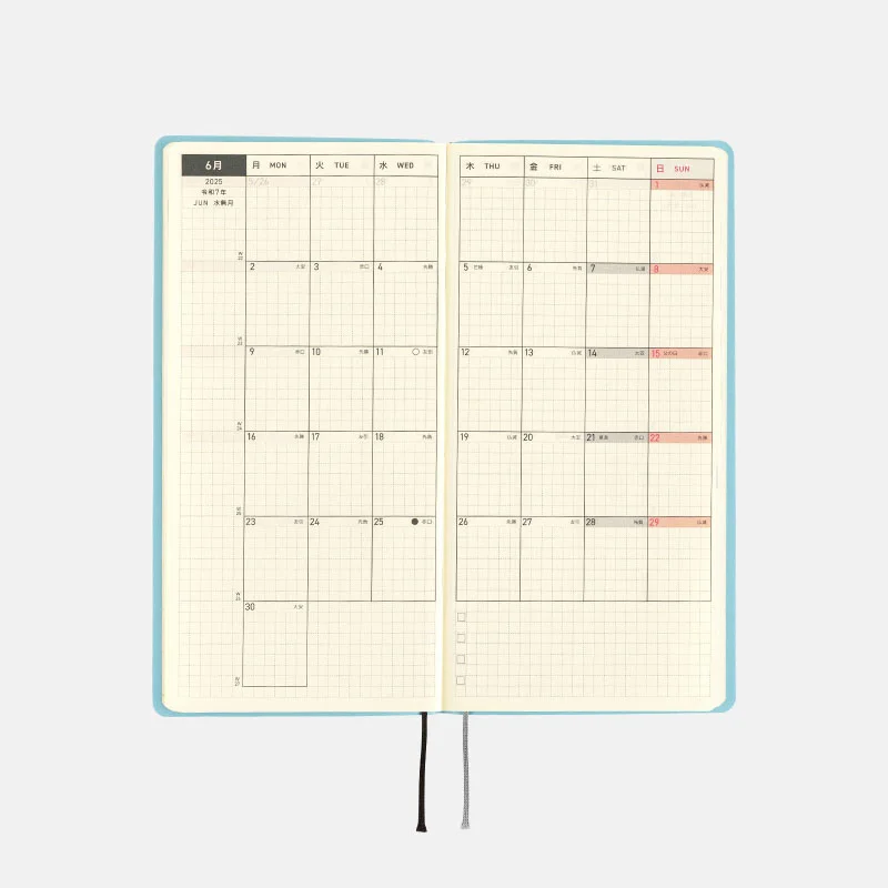 | 紙質・製本 | 薄くて軽く、裏抜けの少ないトモエリバー(手帳専用紙)/糸かがり製本 |