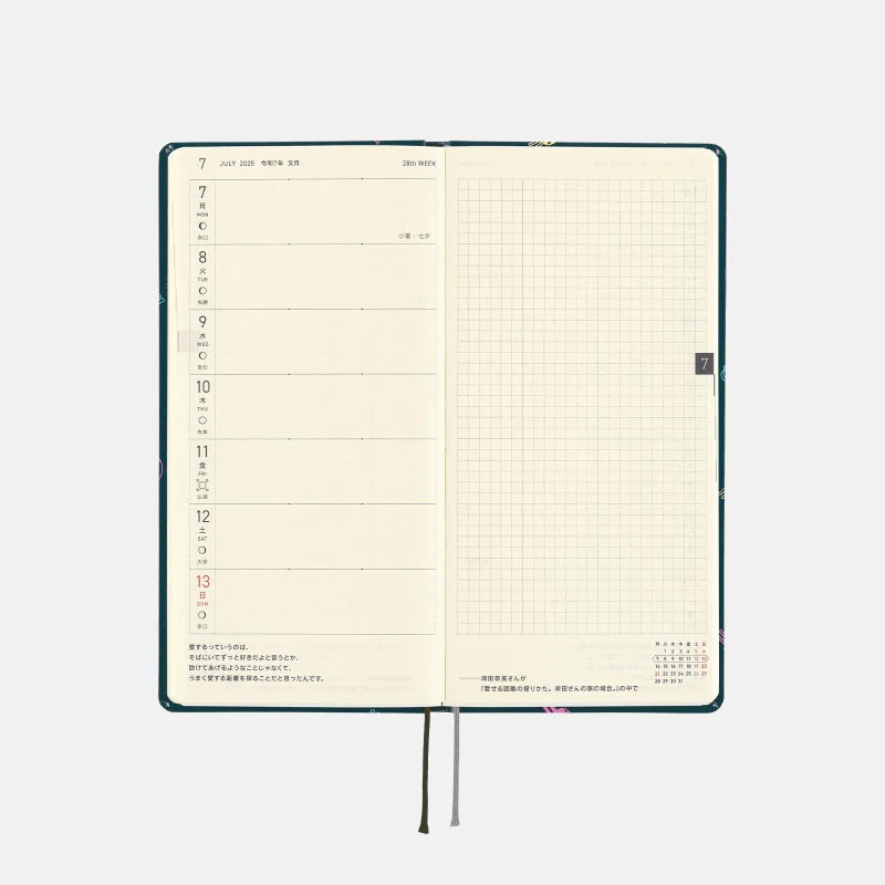 | 紙質・製本 | 薄くて軽く、裏抜けの少ないトモエリバー(手帳専用紙)/糸かがり製本 |
