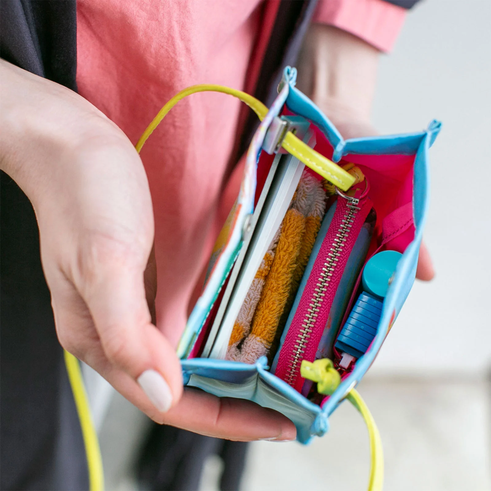 「ぶらぶら」したいときのお散歩ポーチとして。お財布にもなる「ひきだしポーチ・ポケット」、スマホ、イヤホン、お菓子や小さめの水筒などが入ります。