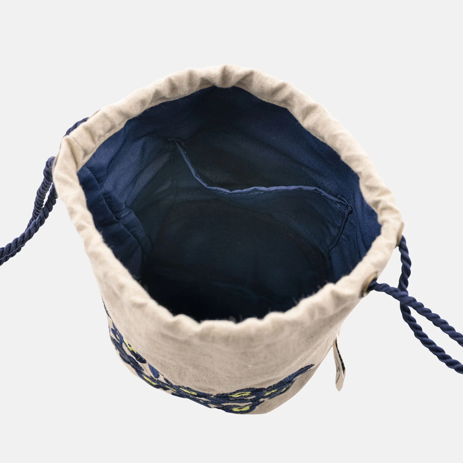 ネイビーと蛍光イエローの糸で刺繍しました。