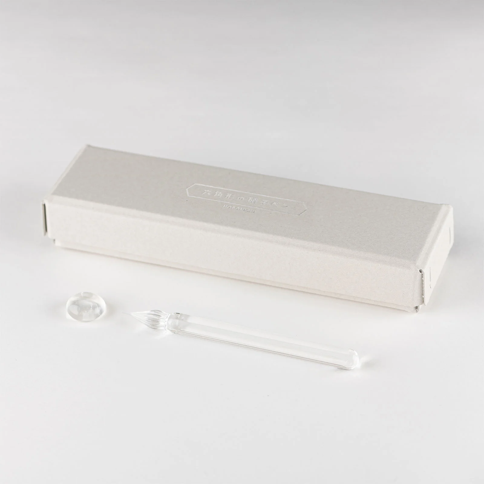 2021年2月販売分の「六角形の硝子ペン 02(すこし太め)」については、ボディのおしり部分がフロスト仕上げになっていません。