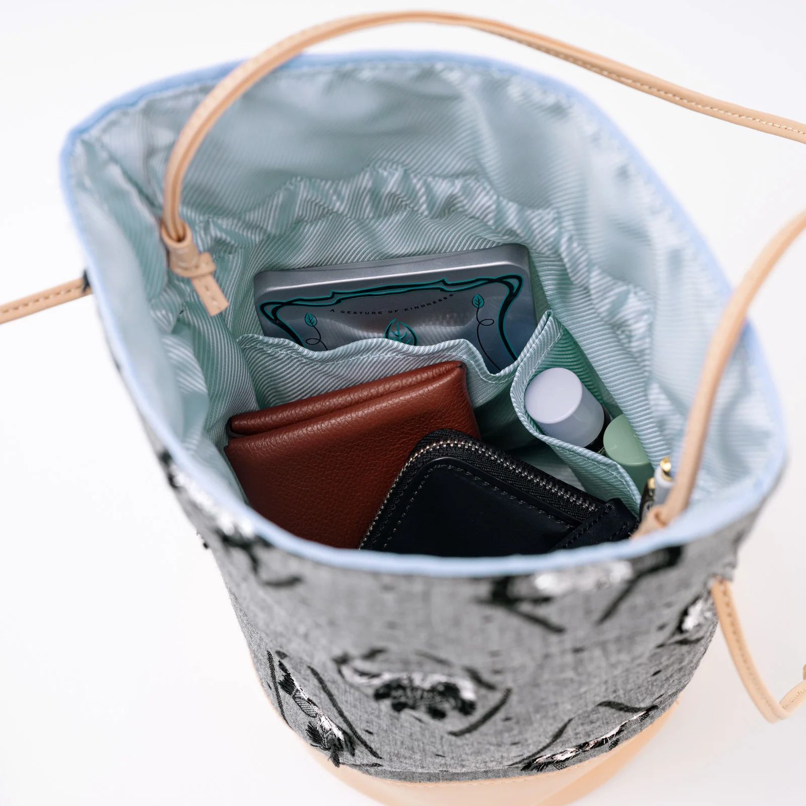 PYTミニバケットバッグ Tokyo in bloom/rabbits| サイズ | 縦240mm×横130mm×厚さ130mm |