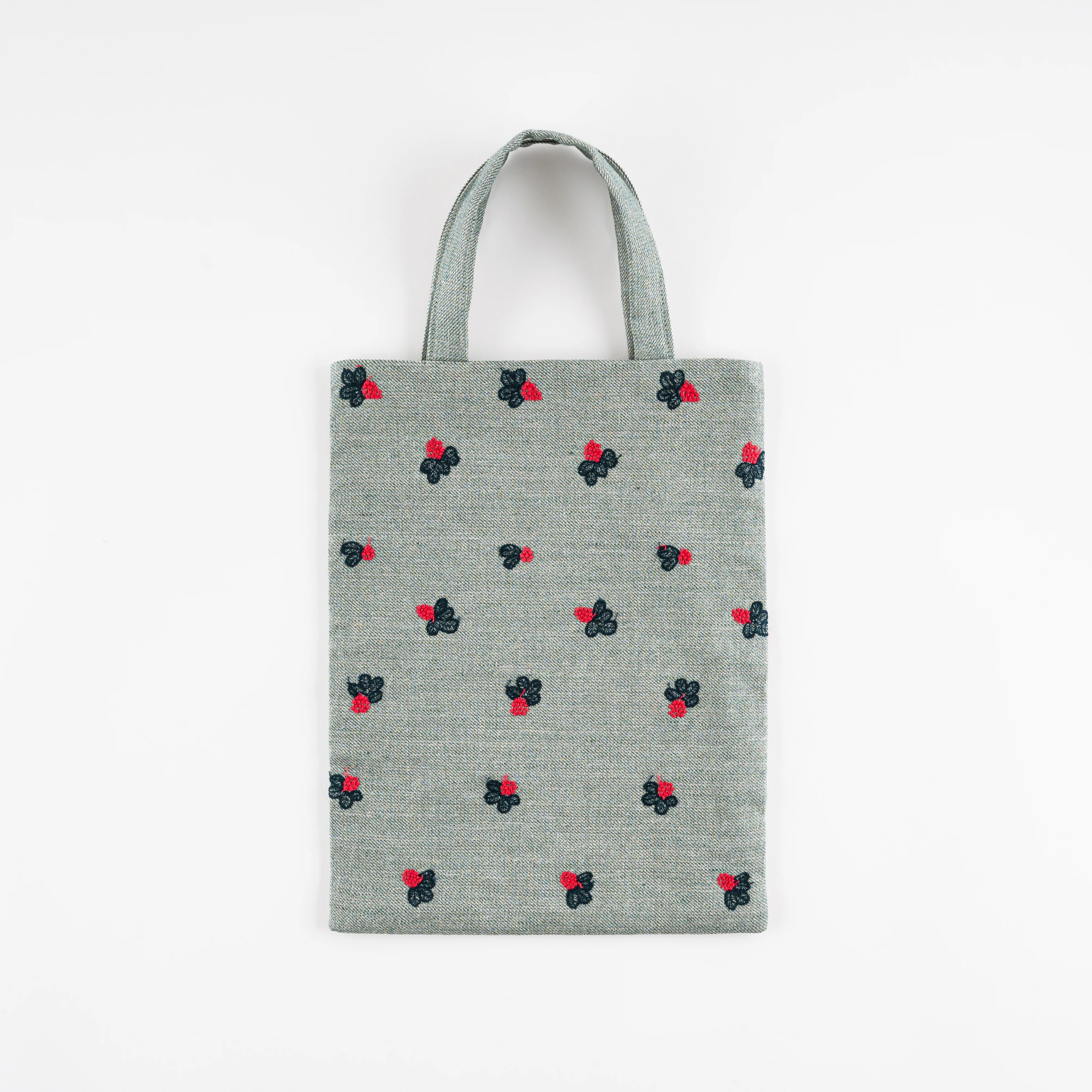 ベリーの刺繍が可憐にほどこされています。