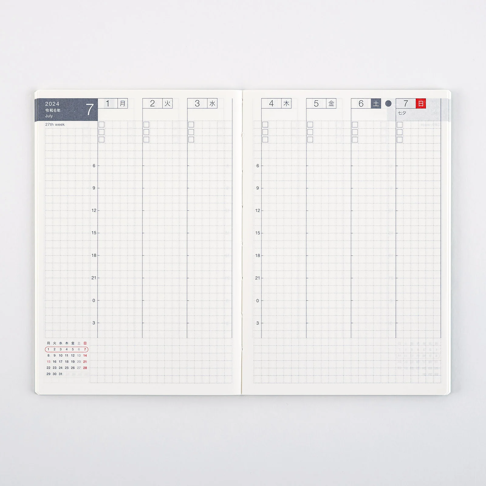 見開きで週の予定をパッと見渡せる、週間手帳です。