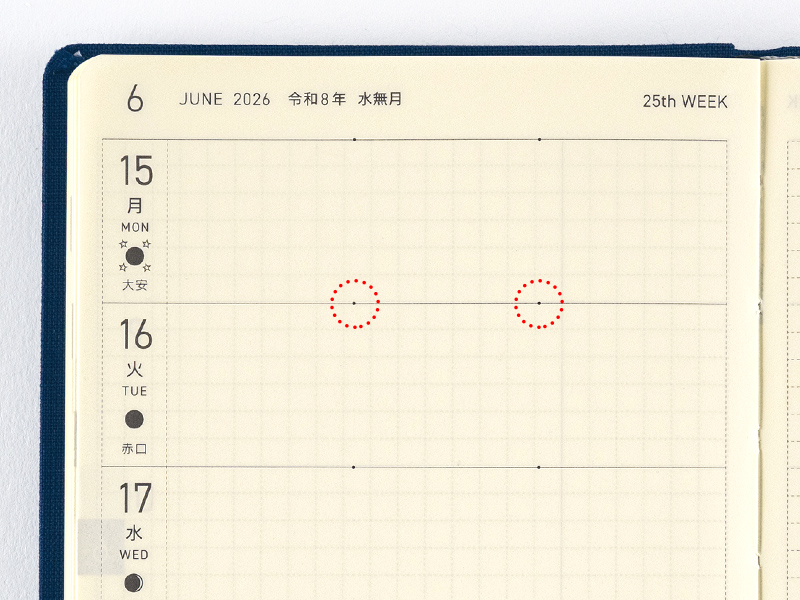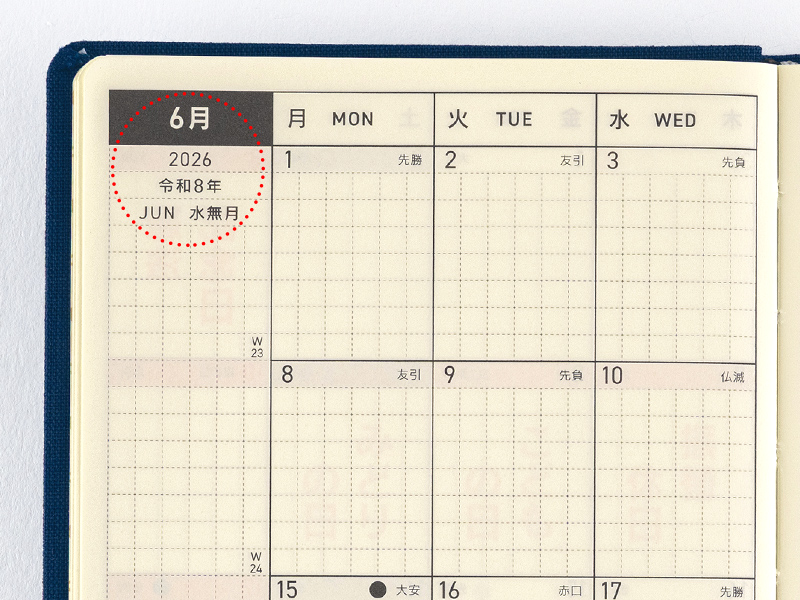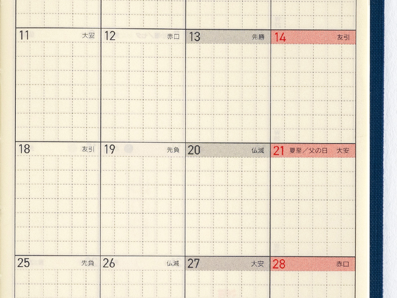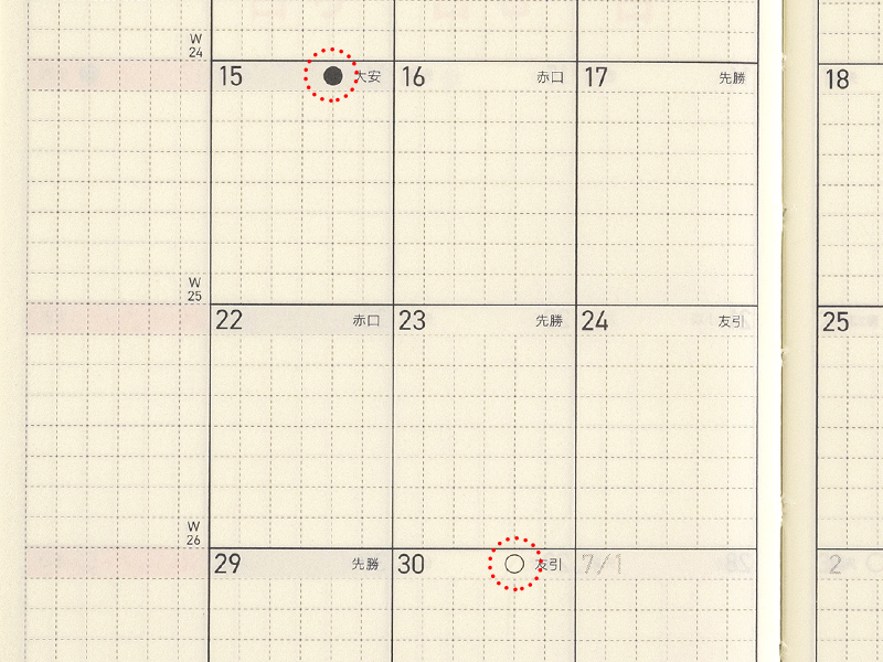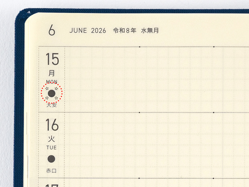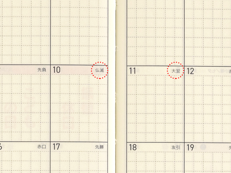 「大安」や「仏滅」といった「六曜」も記載しています。