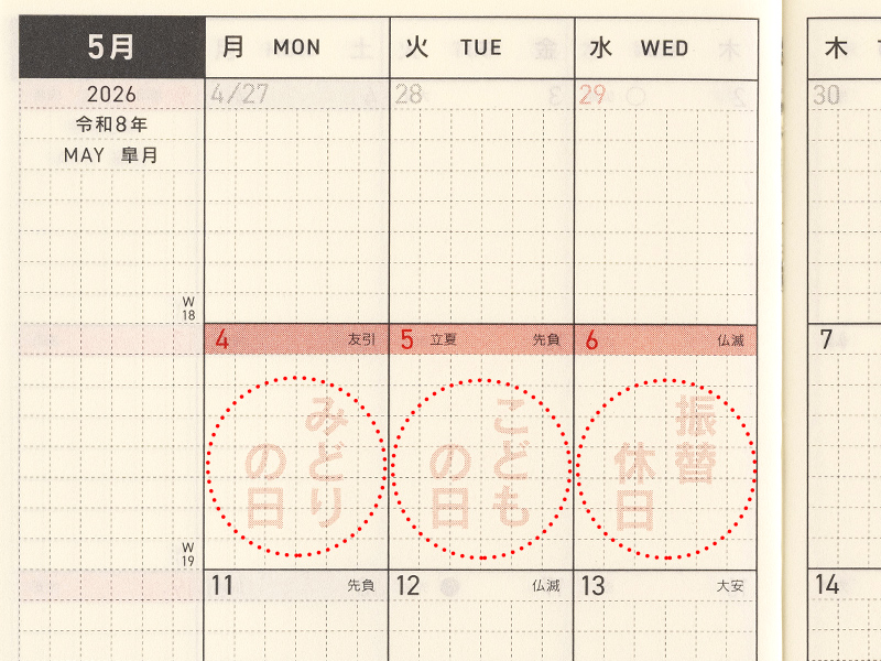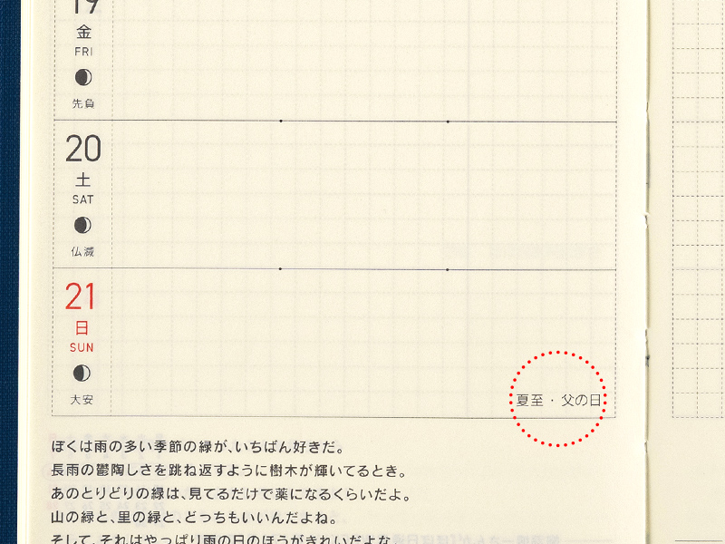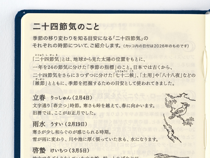 祝日や日本の休日、「二十四節気」「雑節」の掲載はございません。